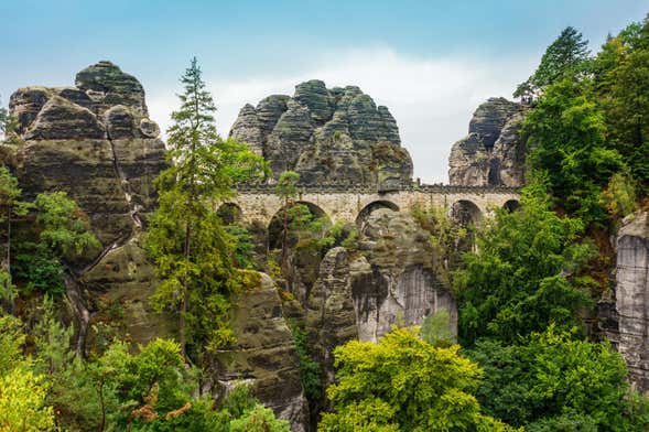 Con esta excursión conoceremos Rathen, un municipio situado junto al Parque Nacional de la Suiza Sajona. Al llegar, realizaremos una caminata de 1 kilómetro hasta llegar al Bastei. Este mirador conocido por sus impactantes rocas de arenisca os brindará una panorámica extraordinaria del río Elba. Además, junto a él se levanta un puente de siete arcos desde donde veréis el barranco de Mardertelle y sus 40 metros de profundidad.