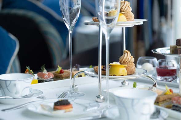 La entrada incluye dos bebidas por persona y dos snacks, pudiendo escoger entre las siguientes opciones: arancini al ragú, trufas Gougére, foie gras con miel y nueces, pasta con caviar, vitello tonnato, ensalada caprese con burrata y pissaladière con cebolla y anchoas.