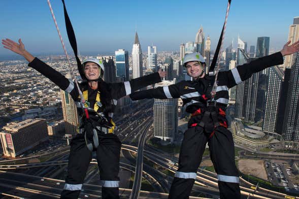 La experiencia Edge Walk os dejará alucinados. Os ayudaremos a colocaros unos arneses de sujeción y podréis a salir a la cornisa exterior del edificio de Sky Views Dubái. Durante 20 minutos aproximadamente, podréis recorrer esta pasarela a modo de caminata aérea y disfrutar de las increíbles vistas que ofrece del Burj Khalifa y los rascacielos de los alrededores. ¡Un auténtico desafío a la gravedad!