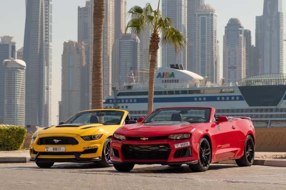 A bordo del coche podrán ir un máximo de tres pasajeros, además del conductor, que hará de guía durante el tour. Dependiendo de la disponibilidad, viajaremos en un Ford Mustang o en un Chevrolet Camaro disfrutando de las calles de Dubái como auténticas estrellas.