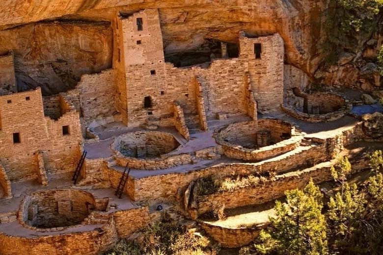 En primer lugar, visitaremos Park Point, donde tendremos unas vistas increíbles desde el mirador Four Corners. ¡Estáis a punto de ver el punto en el que se unen los estados de Utah, Arizona, Nuevo México y Colorado! A continuación, nos dirigiremos al complejo Far View Village, que llegó a ser la zona más densamente poblada, pues se estima que llegaron a vivir cientos de personas en un mismo momento.
