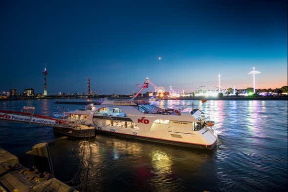 Navegaremos por el Rin mientras descubrimos algunos de los elementos arquitectónicos más importantes de Düsseldorf como el Puerto de Medios, la Torre del Rin, la torre de la basílica de San Lamberto o el Rathaus, el antiguo Ayuntamiento. Además, las luces que iluminan los distintos edificios al atardecer hacen que la panorámica sea aún más bonita.