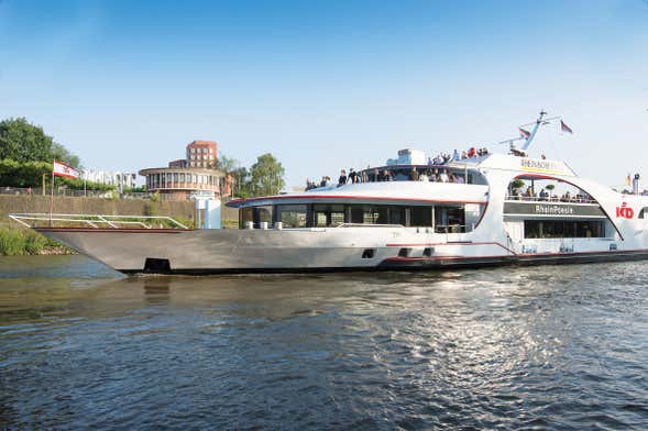 Partiendo desde el embarcadero en el centro de Düsseldorf, iniciaremos un paseo por el Rin, el río que atraviesa la ciudad.