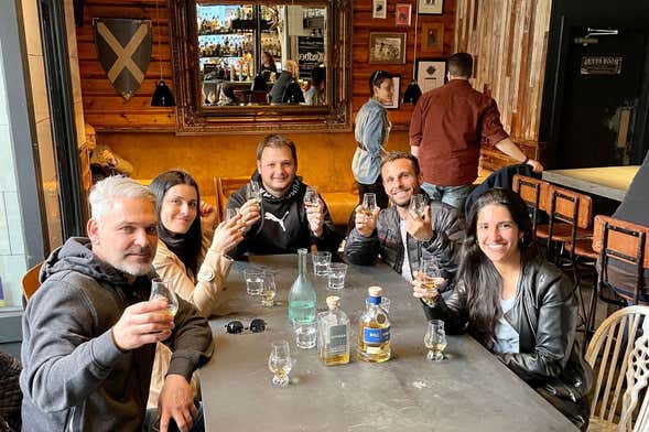 En nuestro recorrido visitaremos tres bares, donde disfrutaremos de una degustación de 4 Single Malt whiskies diferentes. Los whiskies provienen de destilerías artesanales e independientes poco conocidas por fuera de Escocia. Además, comprobaremos por qué los antiguos celtas lo llamaron "agua de la vida". ¡A brindar! Quienes lo deseen, podrán optar por la modalidad sin degustación.
