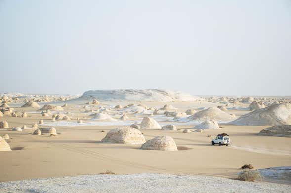 Si tenéis más tiempo y preferís visitar estos espectaculares paisajes en varios días, os recomendamos optar por reservar esta excursión privada de 2 o 3 días al Desierto Blanco y oasis de Bahariya.