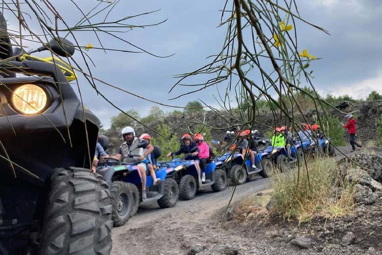 A la hora indicada nos encontraremos junto al Bar Esagonal para comenzar este emocionante tour en quad por el Etna. Allí, recibiréis unas breves indicaciones de seguridad y os equiparemos con lo necesario para conducir estos vehículos todoterreno. ¡Allá vamos!