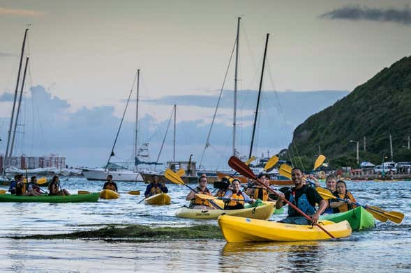 A la hora que elijáis nos encontraremos en Las Croabas de Fajardo. Allí lo prepararemos todo para subirnos a bordo de los kayaks y emprender una aventura por la laguna Grande mientras cae la tarde.