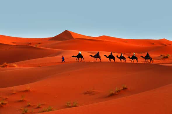 Pasar una noche en el desierto bajo una haima bereber tradicional es una de las experiencias más inolvidables de un viaje por Marruecos. La espectacularidad de las dunas de Merzouga hace que la excursión de dos días merezca la pena.