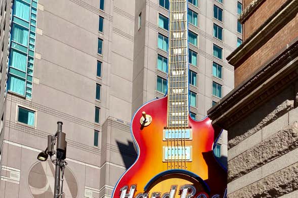 ¡Animaos a sentir cómo corre el ritmo por vuestras venas en el Hard Rock Cafe Filadelfia! Ubicado en la histórica estación de tren Reading Terminal, este restaurante está a solo unas calles de distancia del Independence Hall, el lugar de nacimiento de los Estados Unidos.