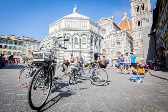 Repartiremos las bicicletas y los cascos, y comenzaremos nuestra ruta por las estrechas calles del centro histórico y el distrito de Oltrarno. Durante el recorrido, pasaremos por lugares tan emblemáticos como la Piazza Strozzi, el Duomo, Santa Maria Novella, el distrito de los artesanos, el Palazzo Pitti, el Ponte Vecchio, la Piazza della Signoria y Santa Croce.