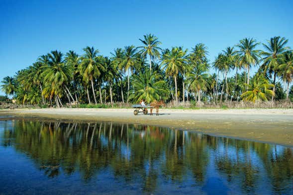 Después de disfrutar de Mundaú, continuaremos con la excursión en dirección a la playa de Flecheiras. En apenas unos minutos llegaremos a este bonito lugar donde podréis bañaros en las piscinas naturales que se crean con la marea baja. No podréis resistiros a sacar una foto de recuerdo. ¡La estampa que forman es casi mágica!