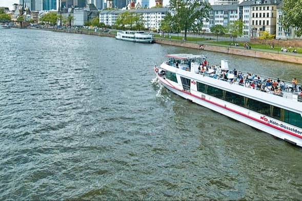 El paseo en barco por Frankfurt os permitirá disfrutar de las mejores vistas de la ciudad mientras navegamos bajo sus puentes. Admiraréis los bellos edificios medievales de Römer, el barrio medieval junto al río Meno que fue reconstruido tras sufrir un bombardeo en la II Guerra Mundial, y contemplaréis el espectacular skyline de los rascacielos del distrito financiero.