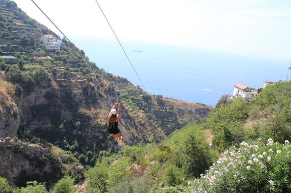 Nos colocaremos los arneses, el casco y el resto del material necesario para deslizarnos en tirolina por la Costa Amalfitana. Antes de empezar a liberar adrenalina por cada poro de vuestra piel, repasaremos juntos las normas de seguridad básicas. Después, llegará lo más divertido.