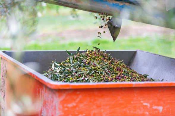 En primer lugar, visitaremos los olivares que rodean esta almazara del municipio riojano de Galilea. Durante el paseo, aprenderemos a diferenciar los tipos de olivos, y descubriremos cómo la variedad de la oliva, el clima y la ubicación del olivar influyen en la calidad del aceite de oliva.