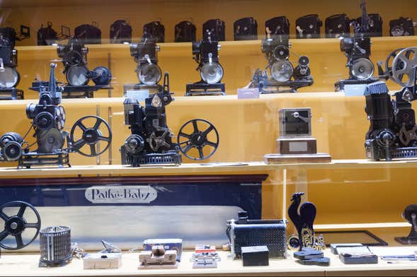 Podréis conocer los hitos de la historia del celuloide, como la invención del cinematógrafo por los hermanos Lumière en 1895, y ver aparatos cinematográficos de distintas épocas que muestran la evolución del Séptimo Arte. ¡El museo expone casi 8000 objetos!