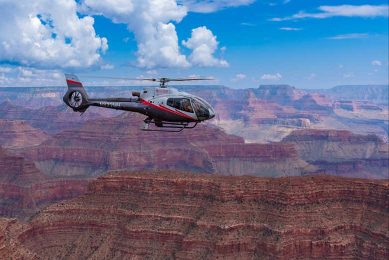 Volaremos sobre el río Colorado hacia el borde norte del Gran Cañón, una de las Siete Maravillas Naturales del Mundo. Desde el helicóptero podremos contemplar las vistas panorámicas de la Tower of Ra​ y Vishnu Schist. Mientras volamos a través de las secciones más anchas y profundas del Gran Cañón, seremos testigos de algunas de las capas de rocas más antiguas del mundo.