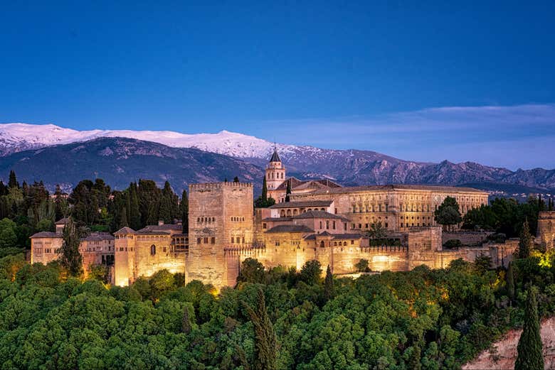 Entrada nocturna a la Alhambra y los Palacios Nazaríes.