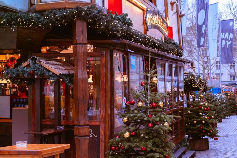 Empezaremos a pasear entre las encantadoras casitas de madera. En ellas encontraremos todo tipo de decoraciones navideñas, regalos y delicias típicas de esta época del año. Os recomendamos que os animéis a probar el pan de jengibre, las almendras garrapiñadas y, para combatir el frío, no dejéis de tomar un vasito de glühwein, el vino caliente que siempre está presente en los mercados de Navidad en Alemania.