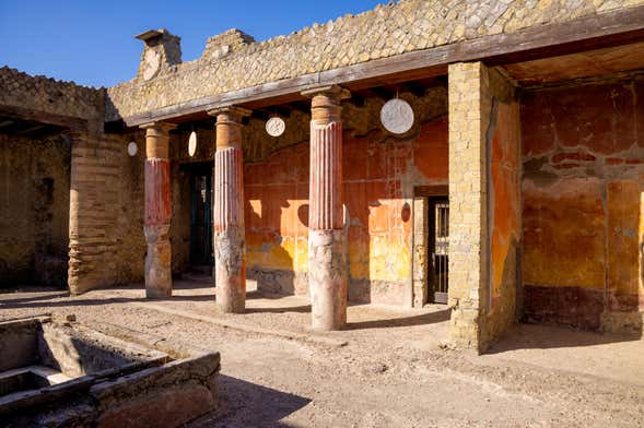En nuestra visita guiada por Herculano descubriremos cómo era la vida en esta ciudad durante el Antiguo Imperio Romano mientras admiramos edificios conservados a la perfección donde parece que el tiempo se ha detenido. Veremos casas, templos, termas, tabernas e incluso más de 300 esqueletos de víctimas de la erupción.