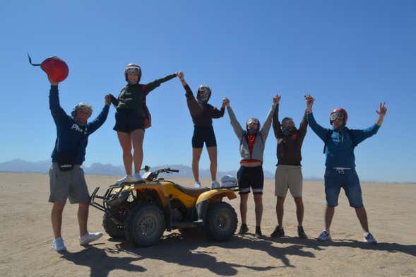 En una hora habremos llegado al campamento beduino, donde tendréis la oportunidad de pilotar un quad durante 45 minutos por los áridos parajes de esta zona de Egipto. ¿Queréis más? Después, subiréis a un buggy para dar un paseo de 20 minutos. ¡Qué maneras de disfrutar el desierto!