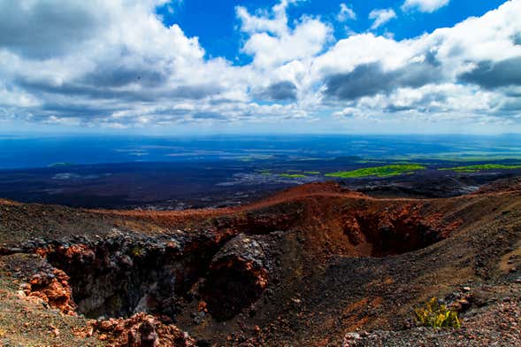 Y por fin llegaremos hasta el filo del volcán Sierra Negra. ¿Sabéis que cuenta con el segundo cráter más grande del mundo? Después, caminaremos hacia el noroeste para toparnos con el volcán Chico, una fisura del anterior, que tuvo su última erupción en noviembre de 1979. Realizaremos una parada para descansar y tomar un almuerzo que consta de un sándwich, fruta y zumo.