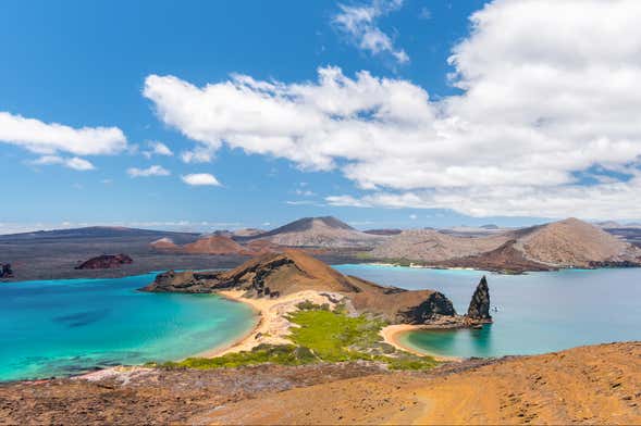Os recogeremos en vuestro hotel de Puerto Ayora y os llevaremos hasta el Canal de Itabaca, donde subiremos a un yate con el que navegaremos durante dos horas y media hasta la isla Bartolomé.