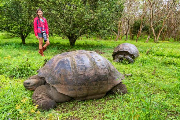Llegaremos a la reserva El Chato, donde habitan tortugas gigantes en su hábitat natural. Recorreremos verdes senderos en los que nos iremos encontrando con estos reptiles tan peculiares que pueden crecer hasta un metro y medio de largo y pesar más de 250 kilos. Veremos cómo comen, se revuelcan en el barro y pasean por este enorme espacio. ¡Podréis hacer fotos de lo más impresionantes!