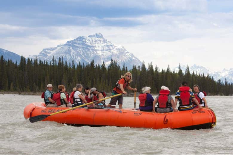 Una vez allí, conoceremos las normas de seguridad y nos ajustaremos los chalecos salvavidas. Tras prepararnos con todo el equipo necesario, emprenderemos una emocionante actividad de rafting en el río Athabasca. ¿Preparados para afrontar sus rápidos y sus corrientes de aguas bravas?