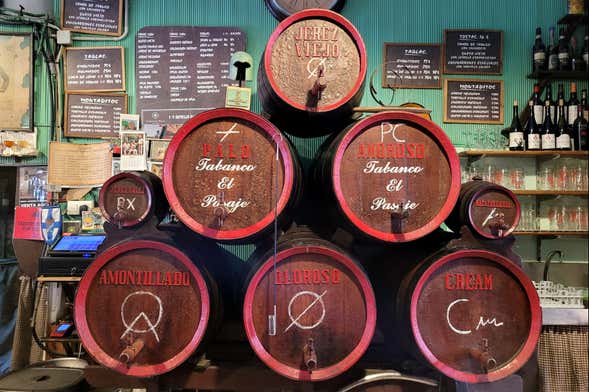 Sin duda, el vino es una de las principales señas de identidad de Jerez de la Frontera. Si queréis descubrir todos sus secretos, a la hora indicada nos encontraremos en la entrada del tabanco El Pasaje, en pleno centro de la ciudad.