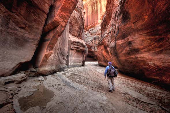 Al llegar a la confluencia entre Wire Pass y Buckskin Gulch, haremos un descanso para que podáis recuperar fuerzas comiendo por vuestra cuenta. Tras esta pausa, continuaremos caminando por el cañón y atravesaremos diferentes zonas rocosas. ¡No dejaréis de hacer fotos!