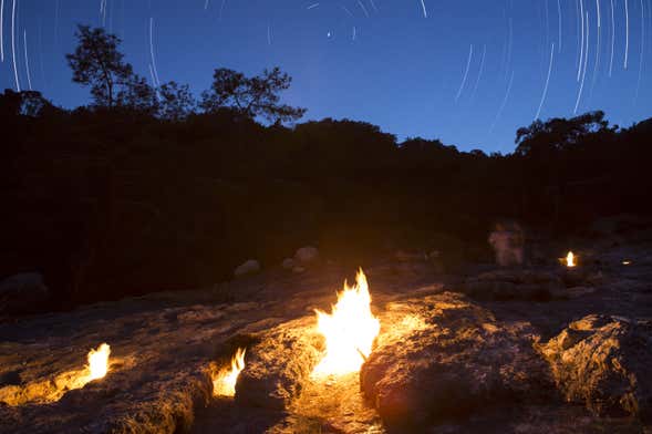 ¿Verdad que es una historia preciosa? En realidad, lo que causa estos fuegos eternos es el metano que se acumula en el interior de la montaña, cuyos gases se escapan por las fisuras y crean unas llamas que nunca se apagan. ¿Sabíais que, además, servían como faro para los marineros que llegaban a las costas?