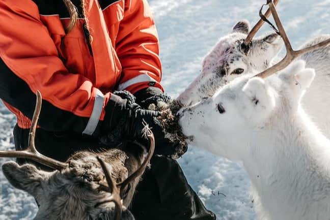 Además, veremos los entrenamientos que realizan para poder tirar de los trineos, una de las actividades más famosas de la zona. ¡Por algo son los conductores de Papá Noel! Los renos son unos de los animales más dóciles de Finlandia, a pesar de que son semisalvajes.
