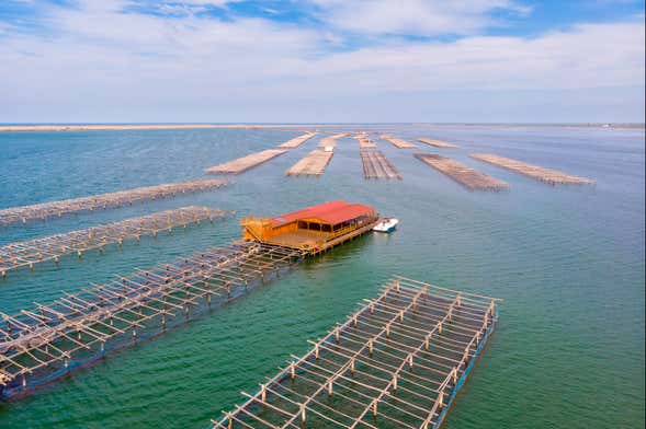 Una vez a bordo, nos dirigiremos hacia las bateas, donde descubriremos el apasionante proceso de cría y cultivo de mejillones y ostras. Junto a estas instalaciones os contaremos numerosos detalles y curiosidades. Además, tendréis la oportunidad de explorar el museo para seguir aprendiendo.