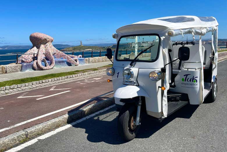 A la hora indicada comenzaremos este tour en tuk tuk por La Coruña partiendo desde la terminal de cruceros (Palexco). ¿Preparados para descubrir una de las ciudades más bonitas de Galicia? Durante el recorrido, dispondréis de una audioguía en español que os irá contando de forma amena la historia de la localidad.