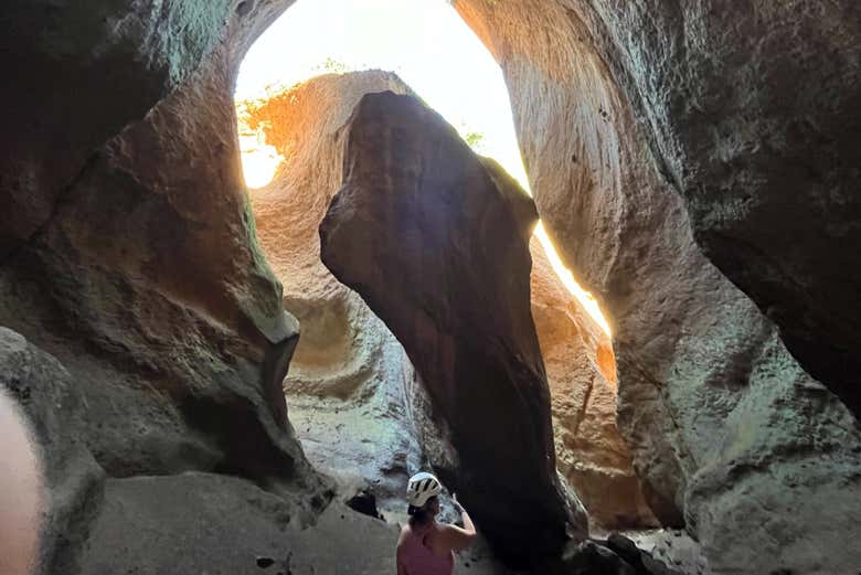 A lo largo de esta ruta de iniciación, perfecta para principiantes, practicaremos rápel por diferentes tramos entre paredones de ceniza volcánica. ¡El más alto de todos alcanza los 20 metros!