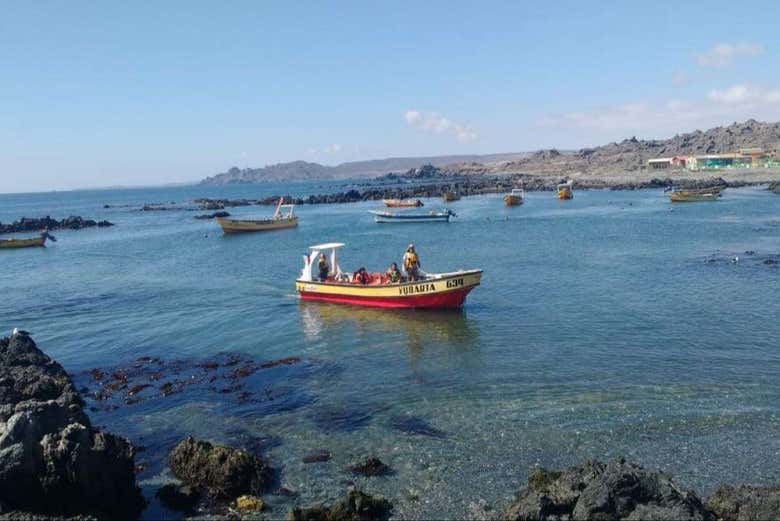 Una vez allí, nos dirigiremos a la costa para subirnos a la embarcación que nos llevará a la isla de Chañaral de Aceituno, que alberga más de 6 kilómetros cuadrados de fascinante vida natural. Esta isla, que forma parte de la Reserva Nacional Pingüino de Humboldt, es hogar de miles de animales marinos.