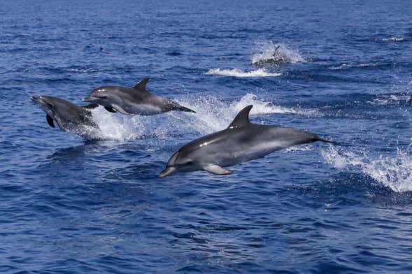 ¡Abrid bien los ojos! Si os fijáis bien, podréis ver delfines comunes y de nariz de botella. ¿Sabíais que estos últimos se comunican por ecolocalización mediante el ultrasonido? ¡Sorprendente! Es posible que estos simpáticos mamíferos se acerquen a la embarcación y podamos observarlos mucho más de cerca.
