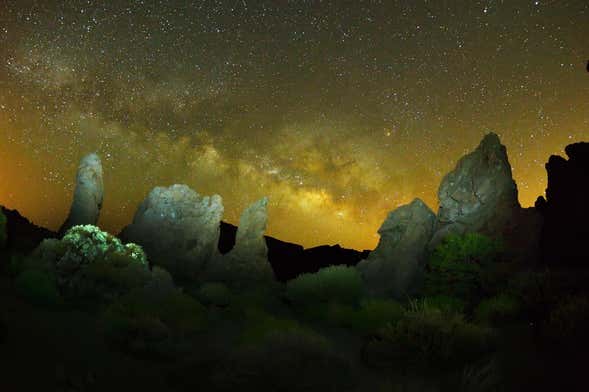 Con esta ruta nocturna de senderismo por las Cañadas del Teide podrás descubrir el cielo estrellado de uno de los firmamentos más limpios y claros del mundo.