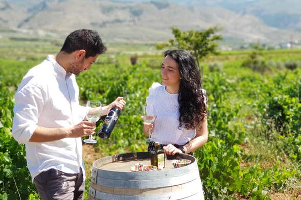 - Tour con cata y aperitivo: además de la cata de cuatro vinos, acompañados de aceitunas, almendras y picos, disfrutaréis de un aperitivo compuesto de una tabla de embutidos y queso de Laujar, acompañado de pan con aceite de oliva y mermelada vegetal.