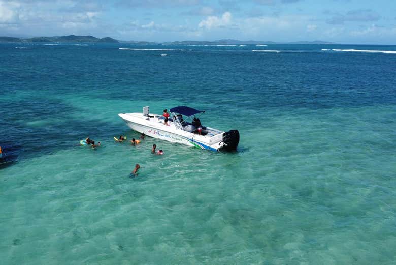 Una vez listos, nos embarcaremos en una travesía por las cristalinas aguas de la bahía de Le Robert, en la costa este de Martinica. Nada más zarpar, navegaremos entre islotes repletos de vegetación mientras os desvelamos los secretos de este ecosistema marino.