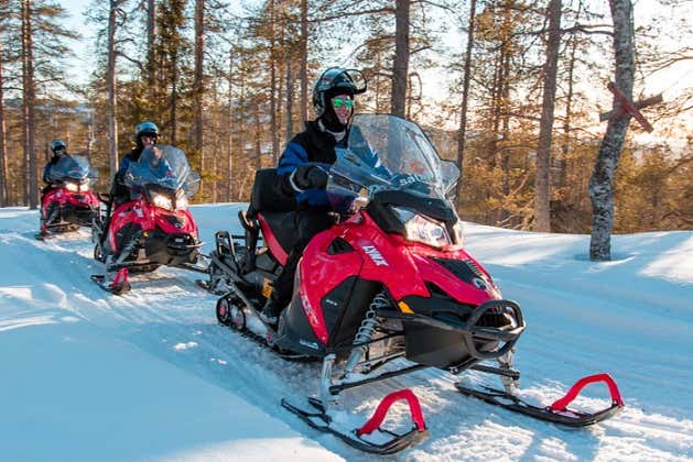 Con las pilas cargadas, subiremos a las motos de nieve y empezaremos a conducir por los espectaculares bosques nevados de Laponia. ¡El broche de oro perfecto a esta aventura en Levi!