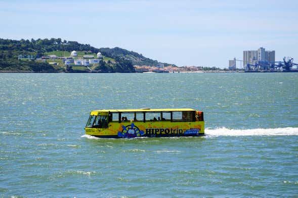 Nos encontraremos en el Doca de Santo Amaro, en Lisboa, donde nos subiremos a bordo del particular autobús anfibio Hipportrip para recorrer la capital portuguesa tanto por tierra, ¡como por agua!