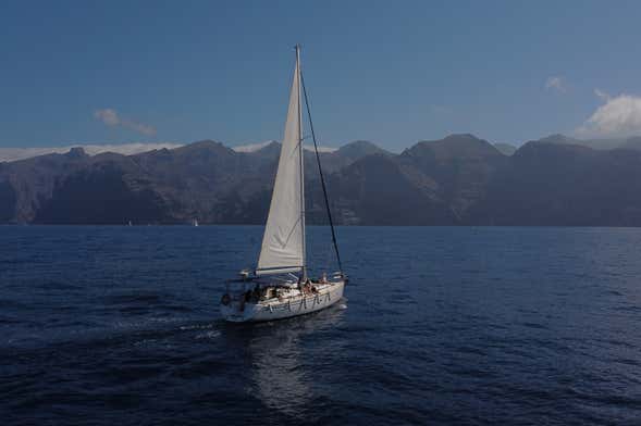 Subiremos a bordo del velero y comenzaremos la navegación por la costa oeste de la isla más grande de Canarias. Desde el mar podremos admirar desde una perspectiva privilegiada los acantilados de Los Gigantes, unos enormes riscos que llegan a rozar los 600 metros de altura.