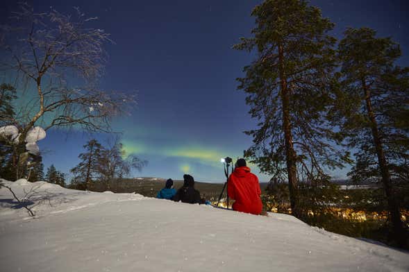 El guía os ayudará a preparar el equipo de fotografía y os mostrará la mejor forma para capturar la panorámica perfecta de la aurora boreal, uno de los fenómenos naturales más impresionantes del mundo. ¡Coged vuestras cámaras, es el momento!