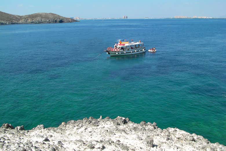 Nos encontraremos a la hora indicada en la Punta del Pedruchillo y subiremos a bordo del barco con el que surcaremos la costa de La Manga. A medida que navegamos mar adentro, iremos conociendo las peculiaridades de las dos islas de origen volcánico que veremos durante la travesía: Grosa y El Farallón.