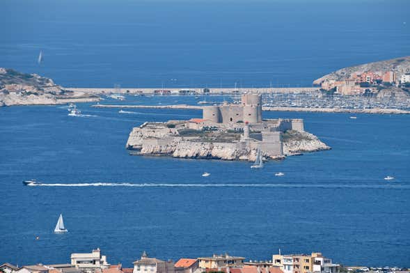 Debido a su excepcional ubicación estratégica, desde las almenas y torres del castillo de If disfrutaréis de unas excelentes vistas panorámicas del litoral marsellés. En lo alto del baluarte también podréis contemplar el perfil de las cercanas islas del archipiélago de Frioul. ¡La distancia es de tan solo unos pocos metros!
