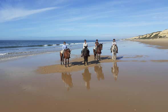 Después, subiremos sobre estos dóciles animales y nos dirigiremos a los parajes costeros del Parque Nacional de Doñana. Durante la ruta, nos acercaremos a la orilla del mar y recorreremos también las dunas del Asperillo. Apreciaréis un gran contraste entre estas zonas, de escasa vegetación, y los senderos boscosos que protagonizarán la siguiente parte de la ruta. ¡Un paisaje de lo más diverso!