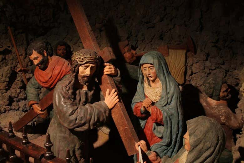 Tras recorrer las diferentes salas del museo, continuaremos el tour por Mondéjar visitando la Cueva de Los Judíos. En esta gruta, situada en el interior de la ermita de San Sebastián, veremos un extraordinario conjunto de doce escenas de yeso a tamaño real. Esta obra escultórica, que narra la Pasión de Cristo, data nada menos que del siglo XVI.