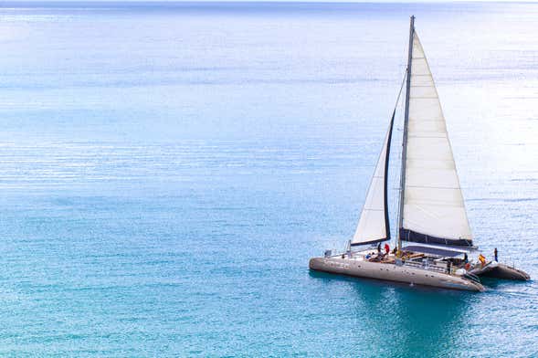 En este paseo en catamarán por el sur de Fuerteventura disfrutaremos de las instalaciones que ofrece esta embarcación a vela de 23 metros de largo, que está equipada con una amplia zona de solariums que nos permitirá broncearnos durante la travesía.
