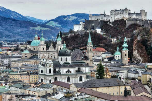 A continuación, haremos un tour panorámico en autobús por Salzburgo y, después, os dejaremos tiempo libre para comer, explorar la ciudad a vuestro aire y subir al castillo.